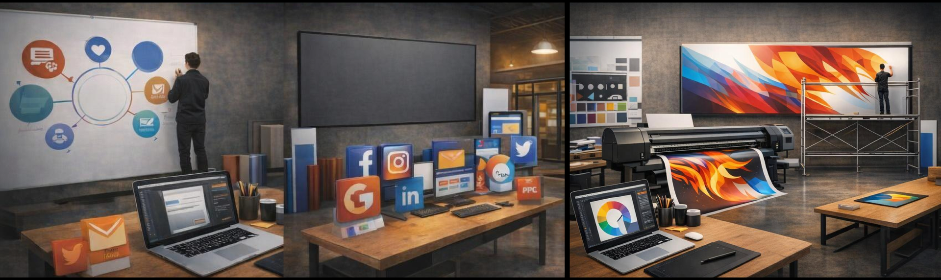 Kokonaisvaltainen mainostoimisto tarkoittaa, että markkinointi ei jää irrallisiksi palasiksi. Saat samalta kumppanilta: